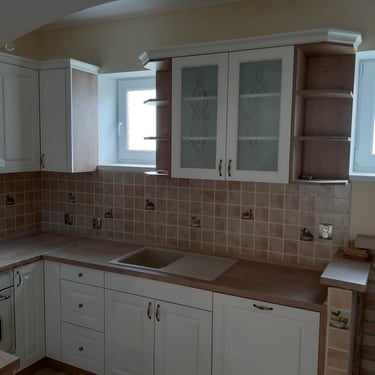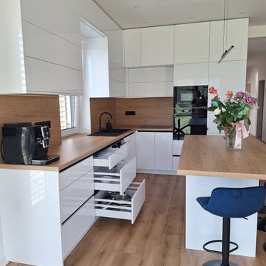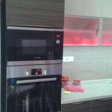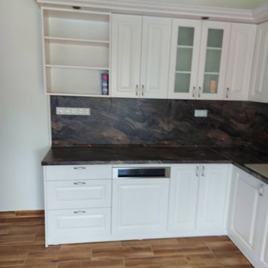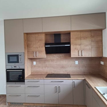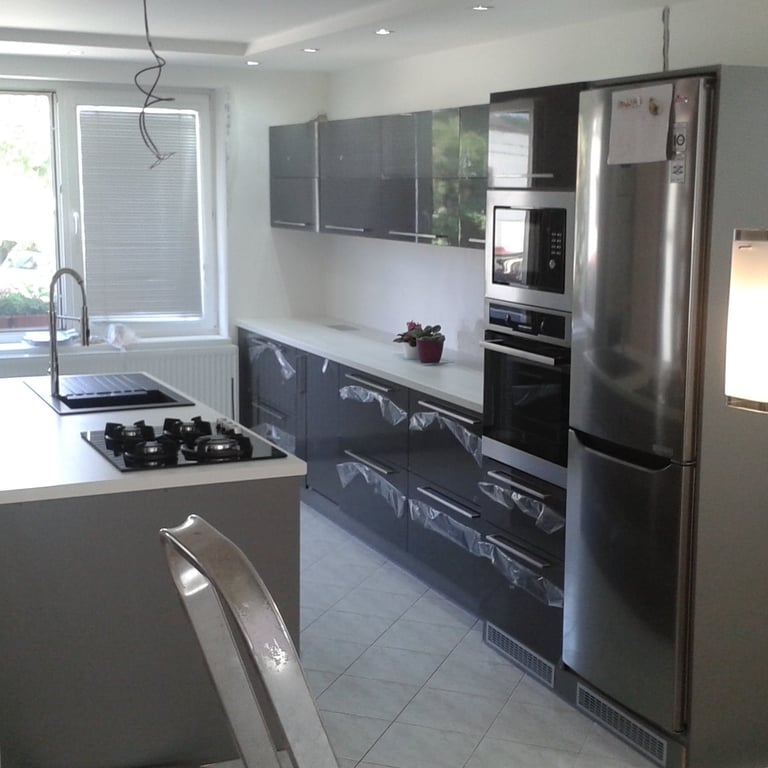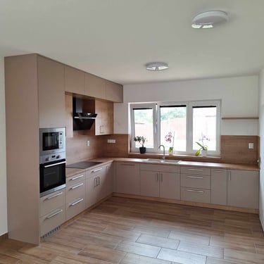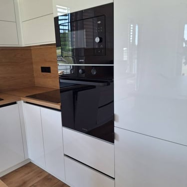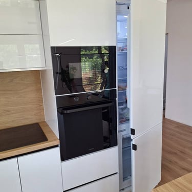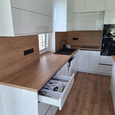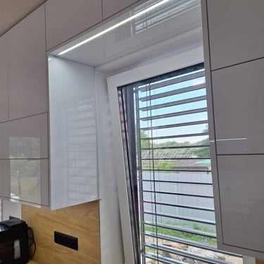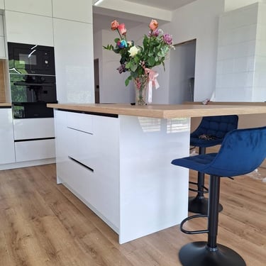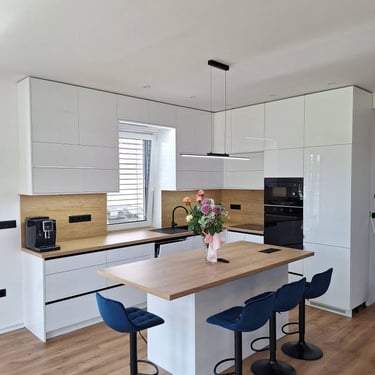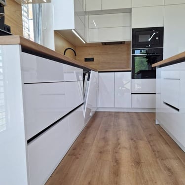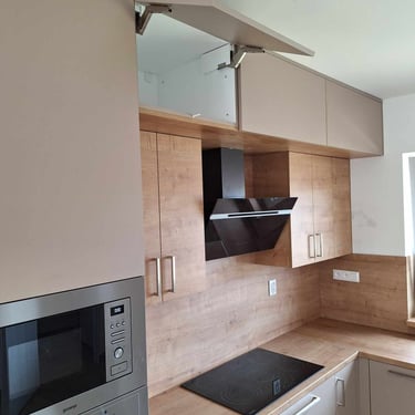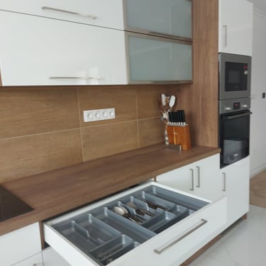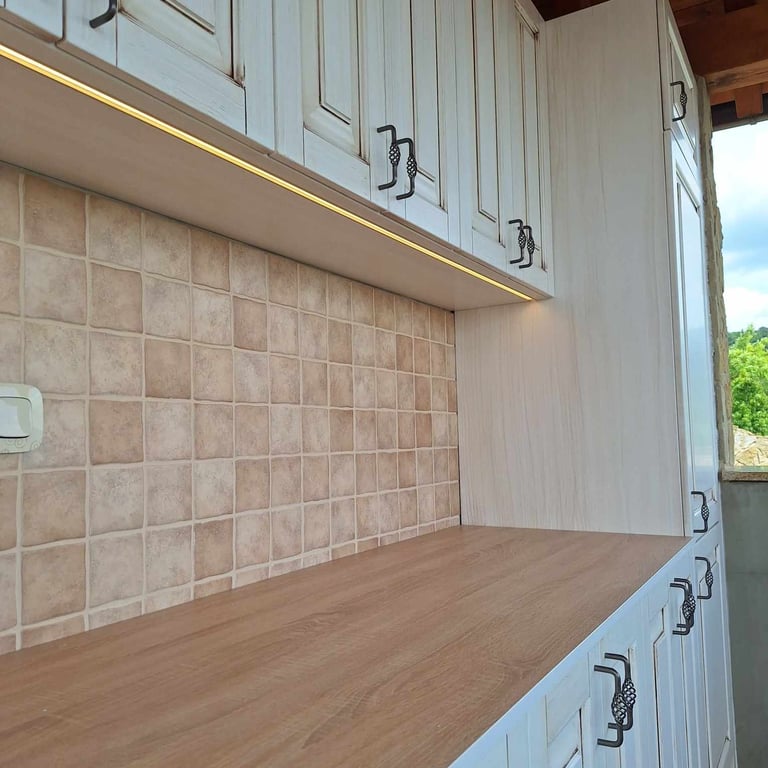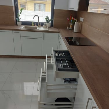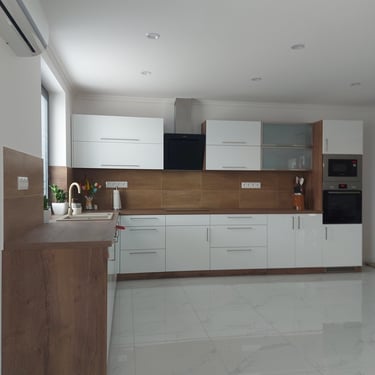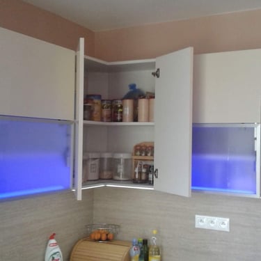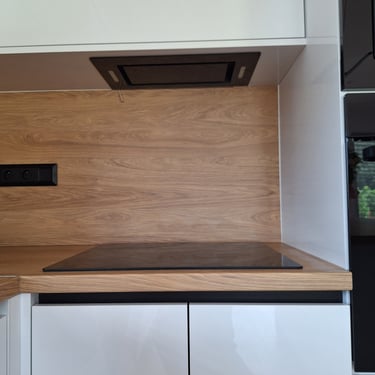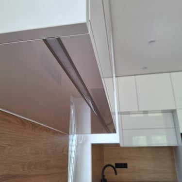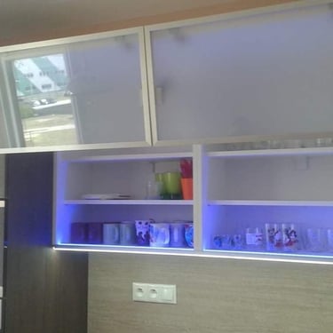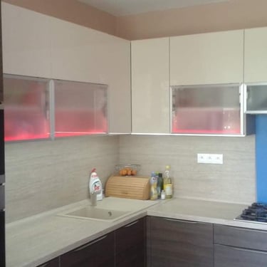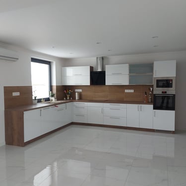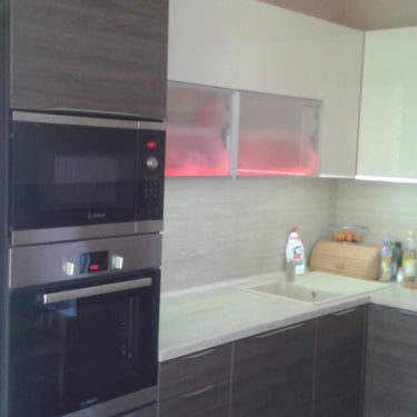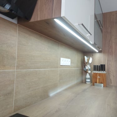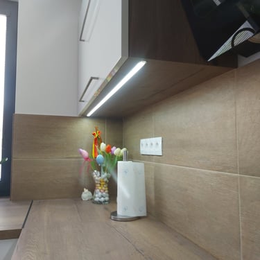 Barna-fehér kontrasztos konyha beépített Led világítással