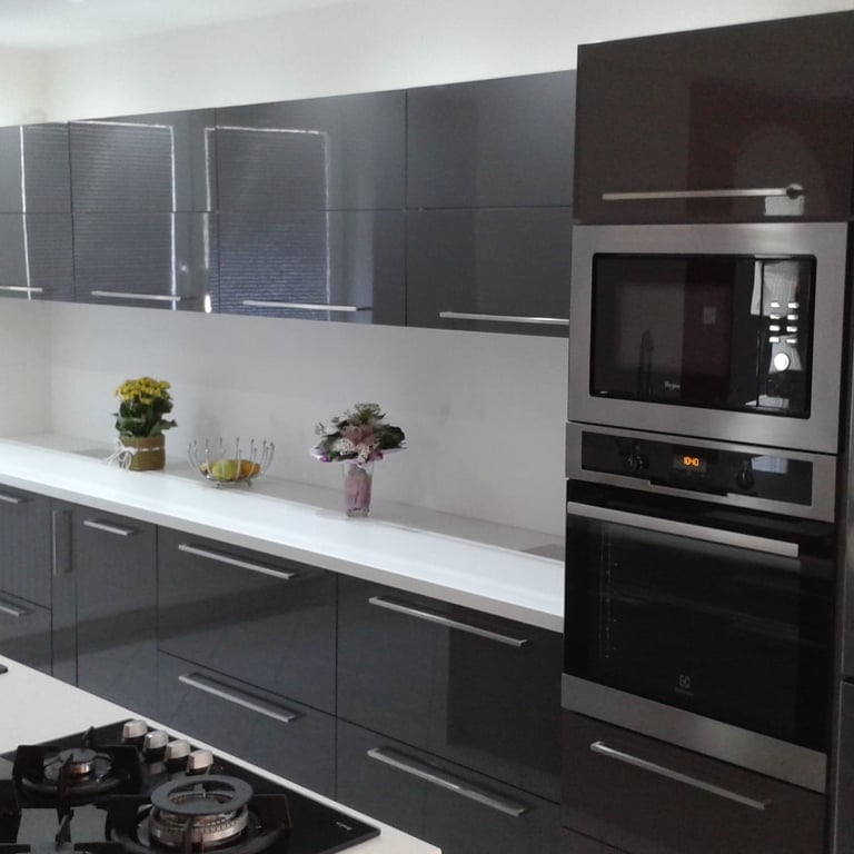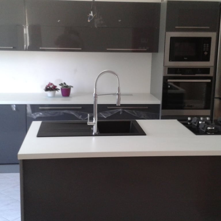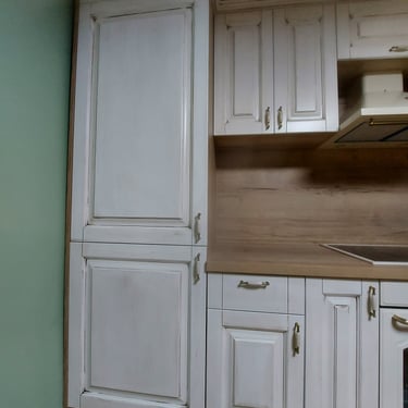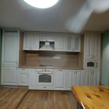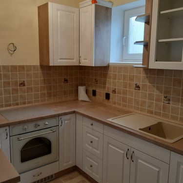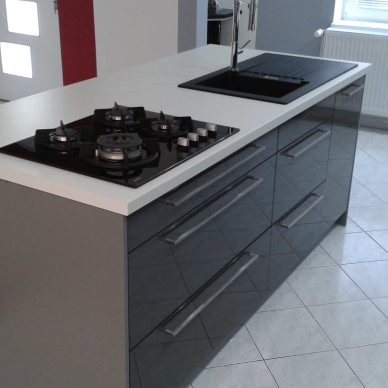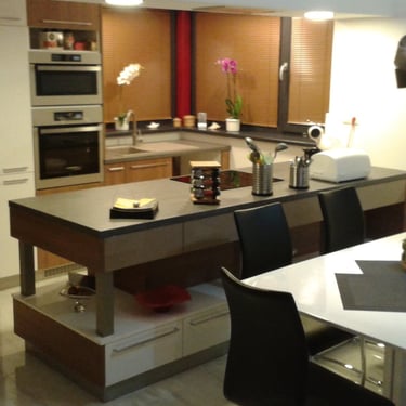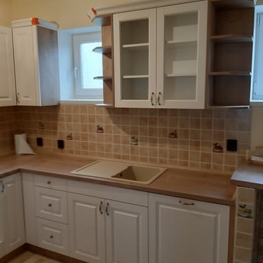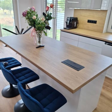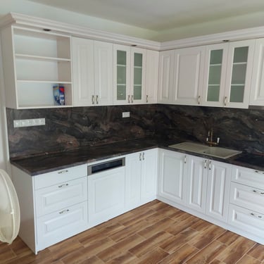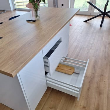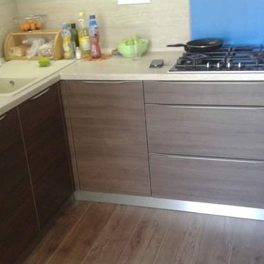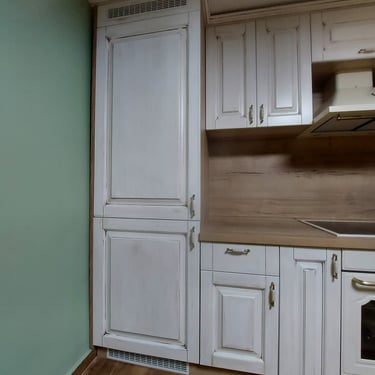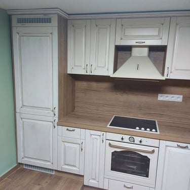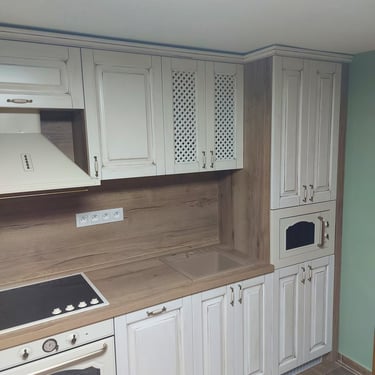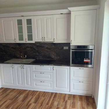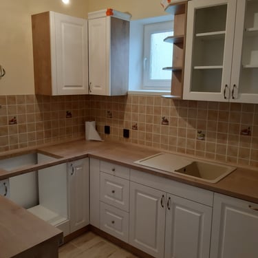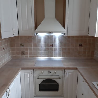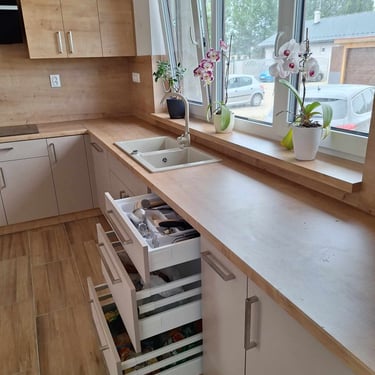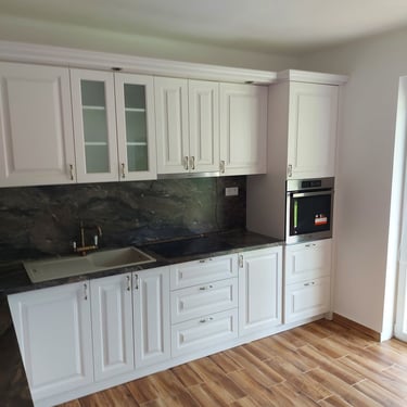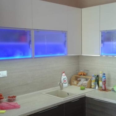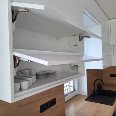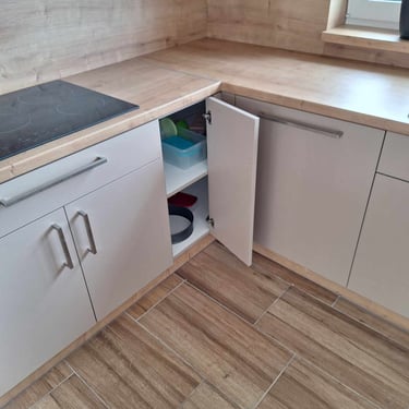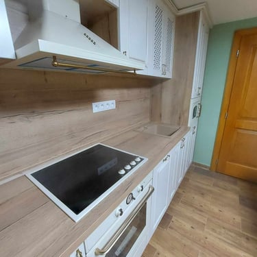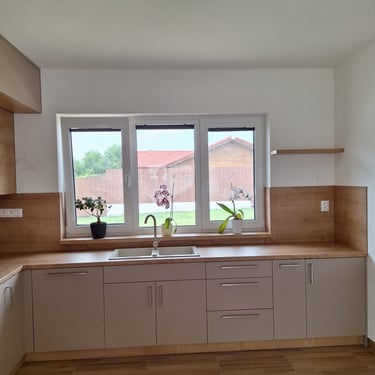 Barna-fehér kontrasztos konyha beépített Led világítással