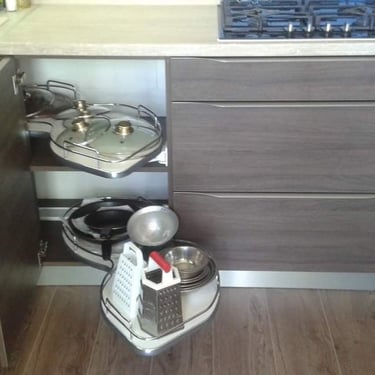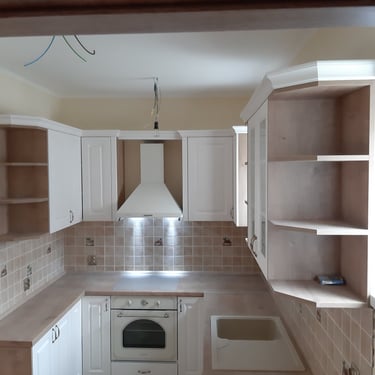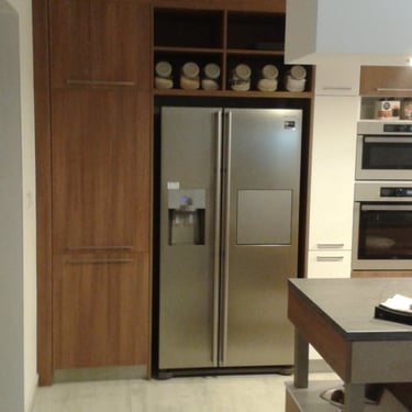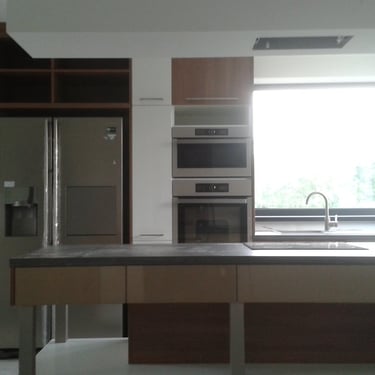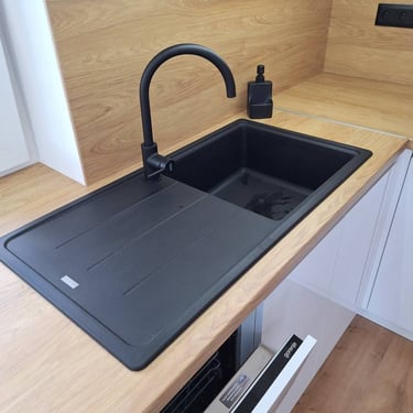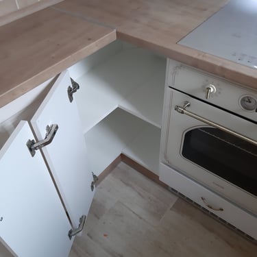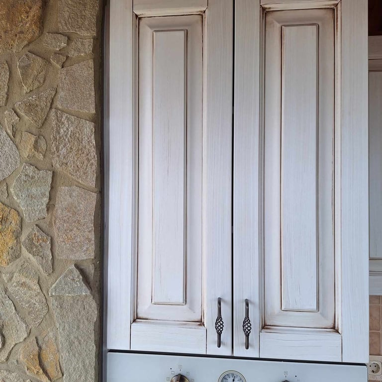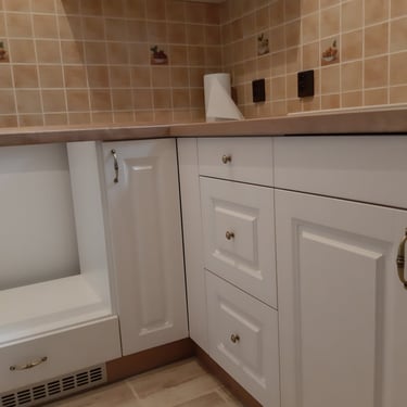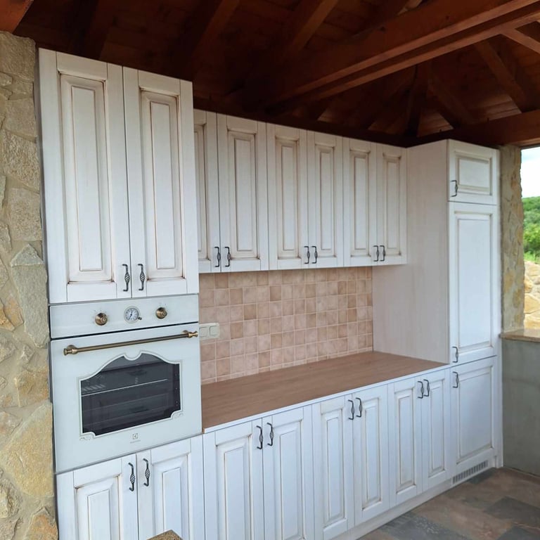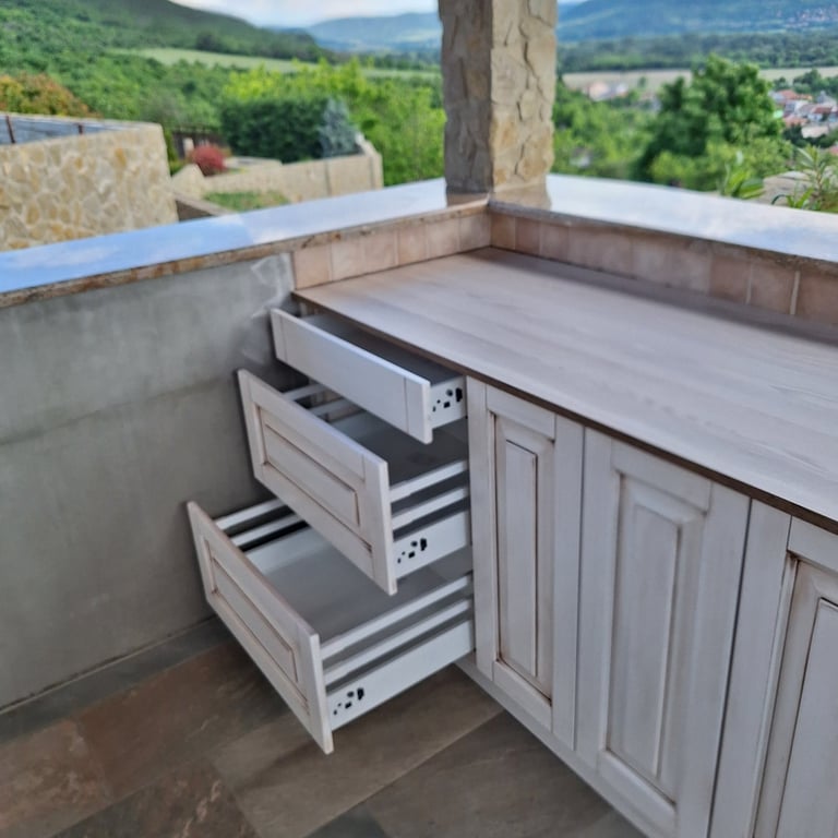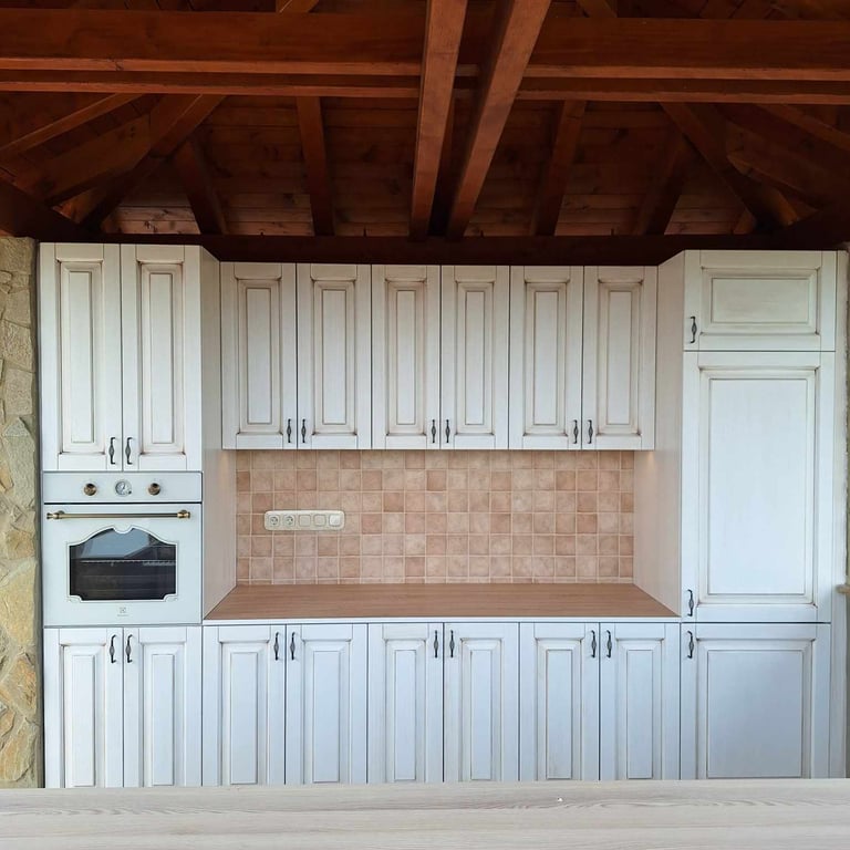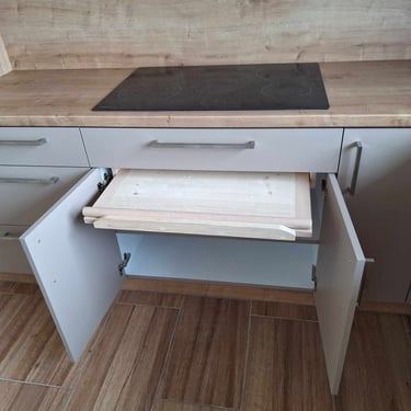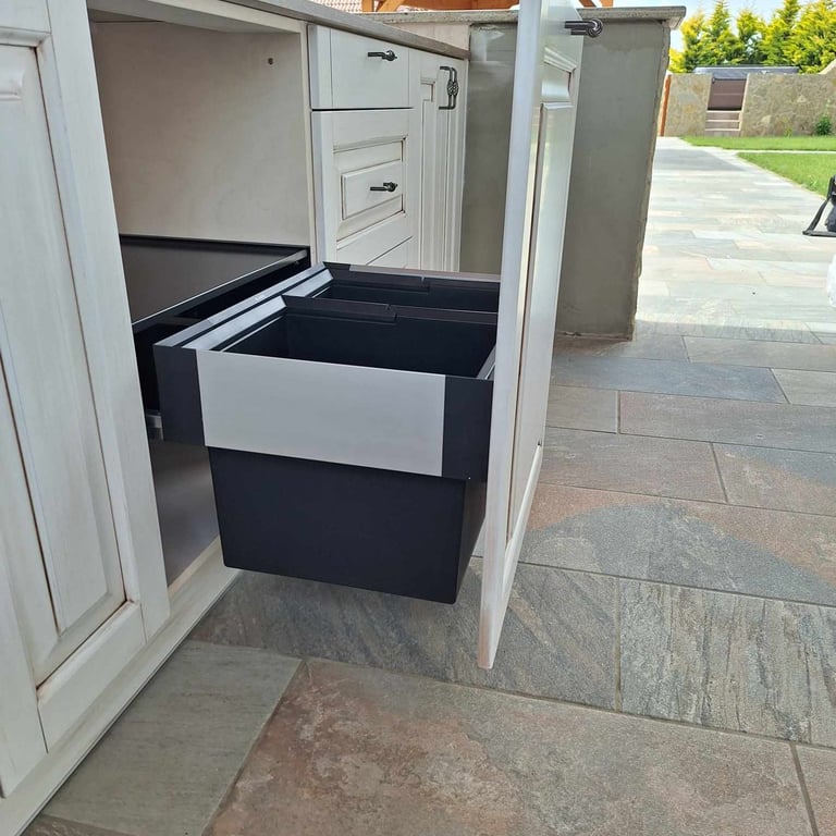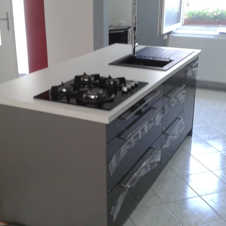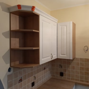 Barna-fehér kontrasztos konyha beépített Led világítással